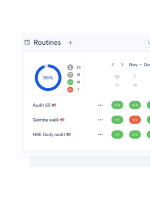 Digitalisieren Sie Ihre Audits, Betriebsrundgänge und Gemba-Walks, um die Einhaltung Ihrer Standards zu gewährleisten und eine schnellere Eskalation von Problemen zu ermöglichen. Ihre Teams sparen täglich Zeit und können sich auf umfangreichere und zuverlässigere Daten stützen, um Probleme nachhaltig zu lösen.