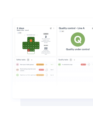 Verabschieden Sie sich von statischen Whiteboards. Erstellen Sie dynamische und personalisierte Dashboards mit allen Informationen, die Sie für die Leitung Ihrer Shopfloor-Meetings oder die Kommunikation mit Ihren Teams im Betrieb benötigen.